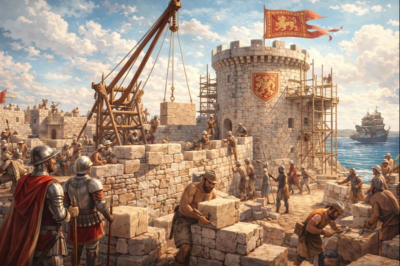 Construction of the Venetian Castle of Antiparos, built to protect the population from pirate raids.